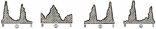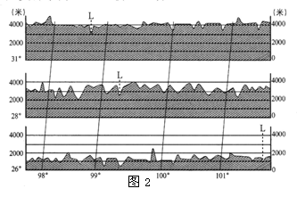 图2是在某区域按不同纬度所做的地形剖面图。读图回答21-22题: