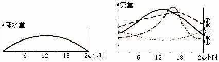 24.若下图为上题谷地中某一天降水量与河流径流量变化示意图,其中最能反映集水区域内植被覆盖良好的一条流量曲线是