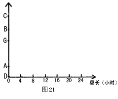 ⑷在答题卡的图中画出DAGBC线此日的昼长变化折线图。(2分)