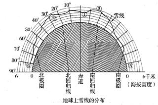 27.雪线是指多年积雪区和季节积雪区的界线,雪线处的年降雪量等于年消融量。右下图是地球上雪线的分布状况图,读图回答下列问题。(8分)