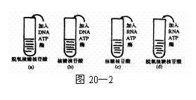 图20-2为一组模拟实验,假设实验能正常进行,四个试管都有产物产生。下列叙述错误的是