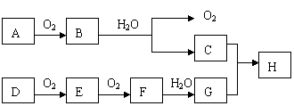 (8分)在下述转化关系中,已知B、D都是淡黄色固体,且A与D为单质,并可反应生成离子化合物。