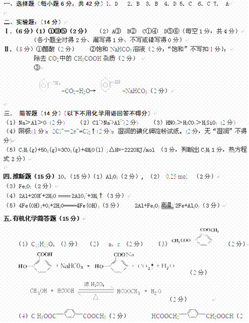 化学答案及评分标准