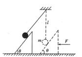 如图所示,长为l的轻质细绳悬挂一个质量为m的小球,其下方有一个倾角为θ的光滑斜面体,放在光滑水平面上.开始时小球刚好与斜面接触,现在用水平力F缓慢向左推动斜面体,直至细绳与斜面平行为止,对该过程中有关量的描述,正确的有 ( B )