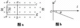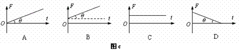 如图a所示,固定在水平面内的光滑金属框架cdeg处于方向竖直向下的匀强磁场中,金属杆ab与金属框架接触良好。在两根导轨的端点d、e之间连接一电阻,其他部分电阻忽略不计。现用一水平向右的外力F作用在金属杆ab上,使金属杆在框架上由静止开始向右滑动,运动中杆ab始终垂直于框架。图b为一段时间内金属杆受到的安培力f随时间t的变化关系,则图c中可以表示外力F随时间t变化关系的图象是 ( B )