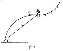8.在冬奥会自由式滑雪比赛中,运动员在较高的雪坡上滑到某一弧形部位处,沿水平方向飞离斜坡,在空中划过一段抛物线后,再落到雪坡上,如图3所示,若雪坡的倾角为θ,飞出时的速度大小为v0则( BCD )