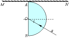 ,直径AB与屏幕垂直并接触于A点.激光a以入射角i=30°射向半圆玻璃 砖的圆心O,结果在水平屏幕MN上出现两个光斑.求两个光斑之间的距离L.