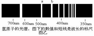 (2)图甲所示为氢原子的能级,图乙为氢原子的光谱。已知谱线a是氢原子从n=4的能级跃迁到n=2的能级时的辐射光,则谱线b是氢原子( )