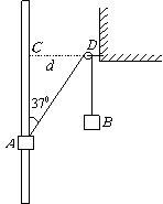如图所示,光滑固定的竖直杆上套有一个质量m=0.4kg的小物块A,不可伸长的轻质细绳通过固定在墙壁上、大小可忽略的定滑轮D,连接物块A和小物块B,虚线CD水平,间距d=1.2m,此时连接物块A的细绳与竖直杆的夹角为37