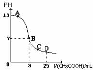 在25mL 0.1mol/L NaOH溶液中逐滴加入0.2mol/L CH3COOH溶液,曲线如图所示,下列有关离子浓度关系的比较,正确的是