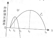 5如图表示一个生物群落中甲、乙两个种群的增长速率随时间变化的曲线,下列叙述错误的是![]()