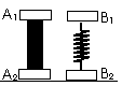 物块A1、A2、B1、B2的质量均为m,A1、A2用刚性轻杆连接,B1、B2用轻质弹簧连接,两个装置都放在水平的支托物上,处于平衡状态,如图所示,今突然迅速地撤去支托物,让物块下落,在除去支托物的瞬间,A1、A2受到的合力分别为FA1和FA2,B1、B2受到的合力分别为FB1和FB2,则[ ]