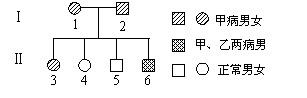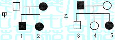 4.下图是甲、乙两个家庭的色盲遗传系谱图,甲家庭的母亲是色盲患者。这两个家庭之间