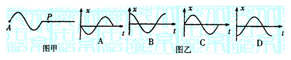 14.上下振动的振源A带动水平细绳振动,某时刻形成的波形如图甲所示. 当波传播到细绳上P点时计时,以向上为质点振动的方向. 则图乙中能表示P点振动图象的是 ( )