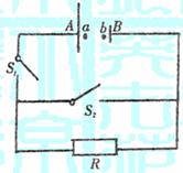 19.如图所示,A、B为电源的正负极,a、b是电源内部非常靠近电源正负极的两点. 电源内阻r=2Ω,R=10Ω. 当开关S1闭合、S2断开时,