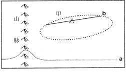 下图中a为等温线,b为锋线且向偏北方向移动,虚线范围内为雨区。读图,回答第3--4题。