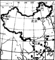 读“我国疆域图”(右下图),回答第10--11题:(参考数据:冬至日20°N昼长10小时47分钟,40°N昼长9小时09分钟)