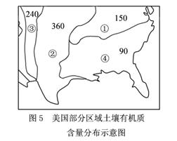 7.图5中,数值表示每英亩40英寸土层中有机质的吨数。土壤有机质含量的多少,与当地的气候、植被关系密切。下列叙述正确的是