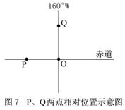 图7中,赤道上P点与经线上Q点的正午太阳高度相等,P点位于O点以西,弧OP与O Q相等。当O、P经度差最大时,