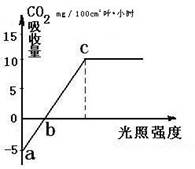 C.在一昼夜中,将该植物叶片置于c点光照下11小时,其余时间置于黑暗中,则每l00 cm2叶片一昼夜中C02的净吸收量为45mg。
