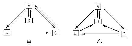 D.在因捕食关系建立的食物链中,能量最少的是乙图中的B所处的营养级
