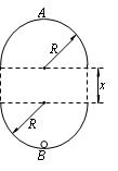 轨道的半径都是R。轨道端点所在的水平线相隔一定的距离x。