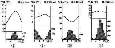 图6表示世界四个点的气温降水状况。读图回答17-20题。