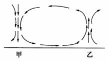 21. 若图7为北半球三圈环流的一部分,且甲地纬度较乙地低,则