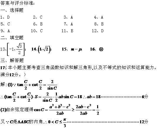安顺市2010年高考数学模拟试卷(二)答案与评分标准