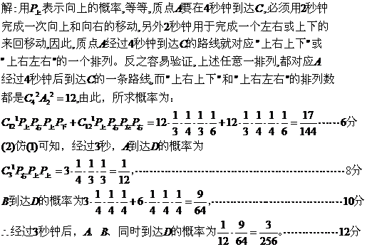 (2)三秒钟后,A,B同时到达D(1,2)的概率。