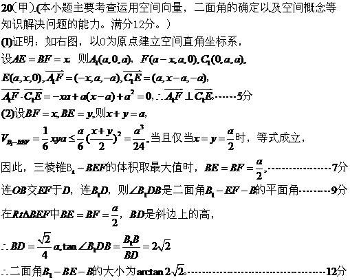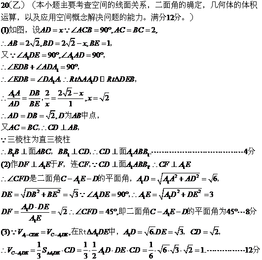 20.(注意:考生在20(甲)、20(乙)两题中任选一题作答,如果两题都答,只以20(甲)记分,本小题满分12分)