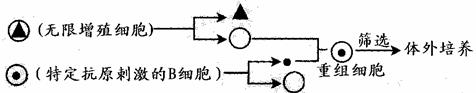 (图示共3分。核质分离正确1分,重组细胞表示正确1分,“筛选、体外培养”1分。)