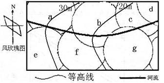 28.右图为某城市规划简图,该市常年盛行东北风。同样的别墅群,在该城市中的a、b、c、d四个居民新区最热销的是