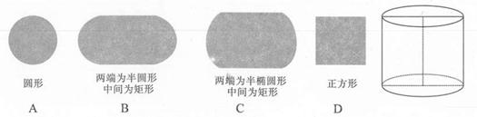 6.如图,一个不透明圆柱体的正视图和侧视图(左视图)为两全等的正方形,若将它竖直放在桌面上,则该圆柱体在桌面上从垂直位置旋转到水平位置的过程中,其在水平桌面上的正投影不可能是 ( )