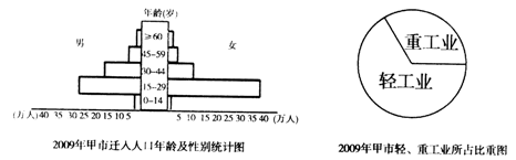 A.甲市迁入人口的就业方向以重工业为主 B.人口迁移主要受自然因素影响