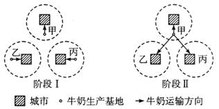 图8为“甲、乙、丙三个地区牛奶生产和销售模式的变化图” ,回答33-34题。