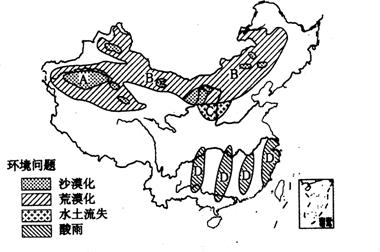 读图11 “我国部分地区环境问题分布图”,回答第45-46题。