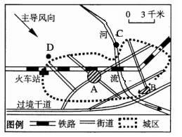 (1)图中A是该市的商业中心,其主要原因是 ;B为该市新建的专业性商品交易市场,其主要原因是 。