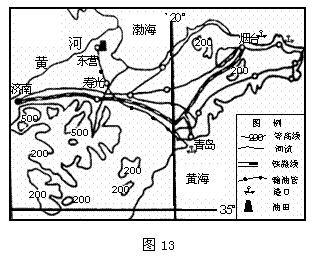 (2)分析图13中信息,说出寿光市发展农业生产的有利自然区位条件。(答出三项即可)