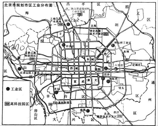 4.读图14 “北京市规划市区工业分布图”,回答下列问题。(15分)