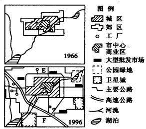 图16是某城市1966-1996年发展示意图.读图16和图17并回答:(7分)