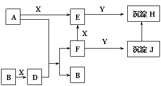 (15分)下图所示反应有直接进行的,也有在溶液中进行的,其中部分产物或反应物、反应条件均已略去。已知:A是一种常见固体单质;B、X都是气体,分属短周期中不同周期元素的单质;D是双原子分子,一个D分子中含有18个电子;化合物Y进行焰色反应时呈黄色。
