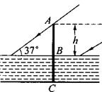 一个大游泳池,池底是水平的,池中水深1.2m.有一直杆竖直立于池底,浸入水中部分BC恰为杆长AC的一半.太阳光以与水平方向成37°角射在水面上,如图所示,测得杆在池底的影长是2.5m,求水的折射率(sin37°=0.6).