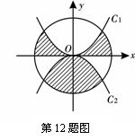 12、如图,⊙O的半径为2,C1是函数y=x2的图象, C2是函数y=-x2的