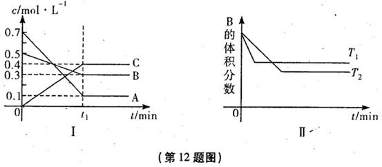 时,反应物和生成物均为气体的某反应,反应过程中浓度变化如图(Ⅰ)所示。若保持其它条件不变,温度分别为