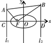 的左、右准线分别为l1、l2,且分别交x轴于C、D两点,从l1上一点A发出一条光