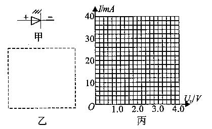 Ⅲ(6分)发光晶体二极管是电器上做指示灯用的一种电子元件。它的电路符号如图甲所示,正常使用时,带“十”号的一端接高电势,带“一”号的一端接低电势。某同学用实验的方法测得它两端的电压UD一和通过它的电流I的关系数据如下表所示。