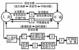 11.将(①改善环境质量②人类与环境统一③控制人口数量,提高人口素质④对立⑤物质资料生产⑥统一)的选项序号填入“人类与环境的关系”知识结构图(图6),选项序号对应正确的一组是