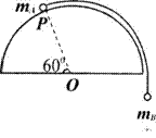 浙江省温州市十校联合体2010届高三期中联考如图所示,细而轻的绳两端,分别系有质量为mA、mB的球,mA静止在光滑半球形表面P点,已知过P点的半径与水平面夹角为60°,则mA和mB的关系是( C )