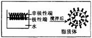 脂质体是根据磷脂分子可在水中形成稳定的脂质双层膜的趋势而制备的人工膜。单层脂分子铺展在水面上时,极性端(亲水)与非极性端(疏水)排列是不同的,搅拌后形成双层脂分子的球形脂质体(如图所示)。